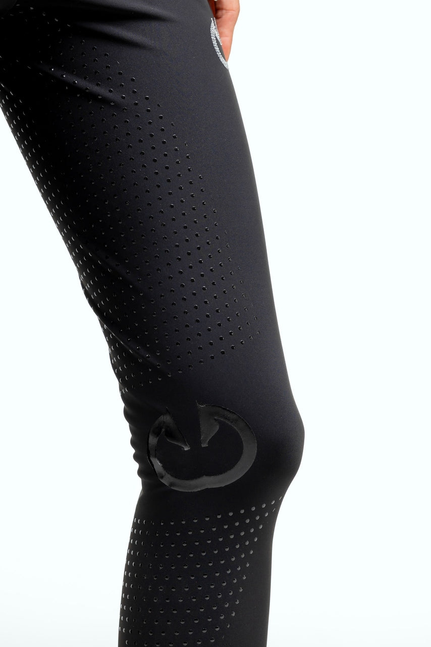 Bryczesy jeździeckie Lumina to połączenie elegancji, wygody i nowoczesnego designu stworzonego z myślą o wymagających amazonkach. Model wyróżnia się subtelnym logo z kryształków umieszczonym na boku, które dodaje wyjątkowego blasku i kobiecego charakteru. Dzięki wyjątkowo elastycznemu materiałowi bryczesy doskonale dopasowują się do sylwetki, zapewniając pełną swobodę ruchu zarówno podczas treningów, jak i codziennej pracy w stajni.