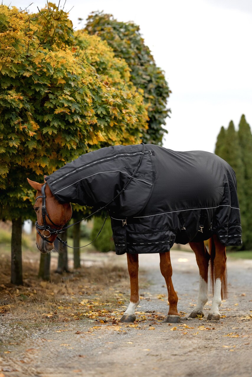 Wytrzymała i elegancka derka padokowa stworzona z myślą o maksymalnej ochronie i komforcie konia w chłodniejsze dni. Wykonana z materiału 1200D o wysokiej odporności na rozdarcia i wilgoć, z 200 g wypełnienia, które zapewnia doskonałą izolację termiczną. Wyposażona w odpinany kaptur, pozwala dopasować poziom okrycia do warunków pogodowych. Całość zdobi logo Equus biegnące przez derkę i kaptur, nadając jej nowoczesny, rozpoznawalny charakter. Model Blacky to idealne połączenie trwałości, funkcjonalności i stylu – stworzony dla koni, które spędzają dużo czasu na padoku.