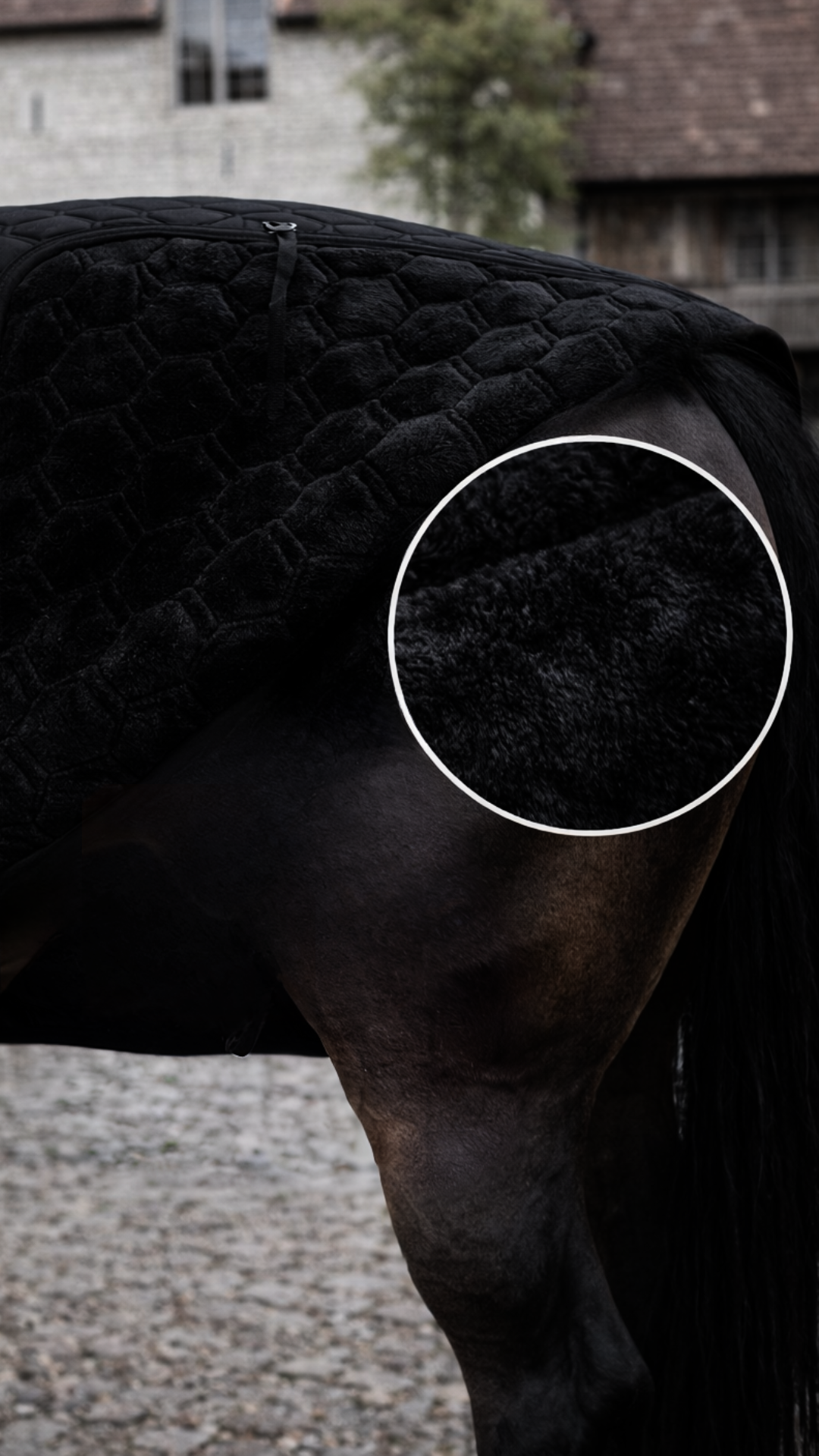 Nasza nowa derka stajenna Velvet łączy elegancję i funkcjonalność, aby zapewnić Twojemu koniowi komfort i styl w chłodniejsze dni. Jest idealna do codziennego użytku w stajni, a także sprawdzi się doskonale na zawody oraz wyjazdy. Dzięki niej Twój koń zawsze wygląda wyjątkowo. Derka wykonana jest z wysokiej jakości weluru, a miękki kołnierz z pluszowego futra dodaje luksusu i ciepła. Jest to produkt, który spełni oczekiwania najbardziej wymagających właścicieli koni.