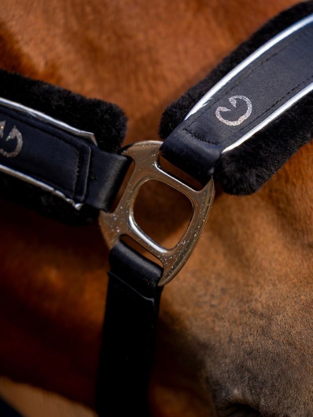 Kantar z futerkiem SatinPro Silver łączy luksusowy wygląd z funkcjonalnością, zapewniając komfort i ochronę nawet najbardziej wrażliwym koniom. Wykonany z wysokiej jakości materiałów, oferuje nie tylko stylowy design, ale także trwałość na lata. Satynowe wykończenia nadają mu ekskluzywny charakter, a srebrno-brokatowe detale dodają subtelnej elegancji.