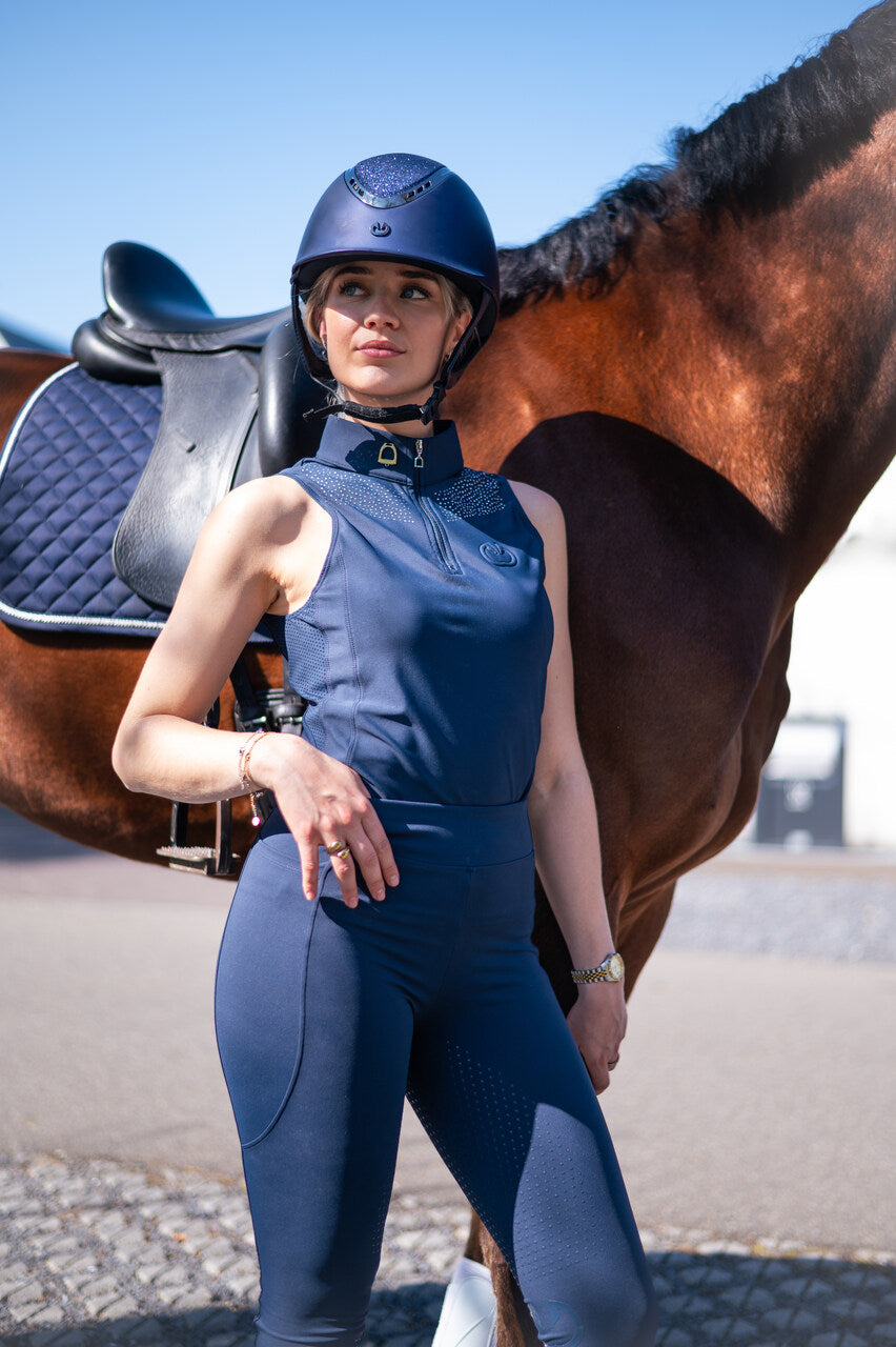 Bezrękawnik jeździecki techniczny damski Crystal to propozycja dla każdej amazonki, która ceni nowoczesny design połączony z wygodą. Wykonany z elastycznego materiału (78% poliester, 22% spandex), idealnie dopasowuje się do sylwetki, zapewniając swobodę ruchu w siodle i poza nim.