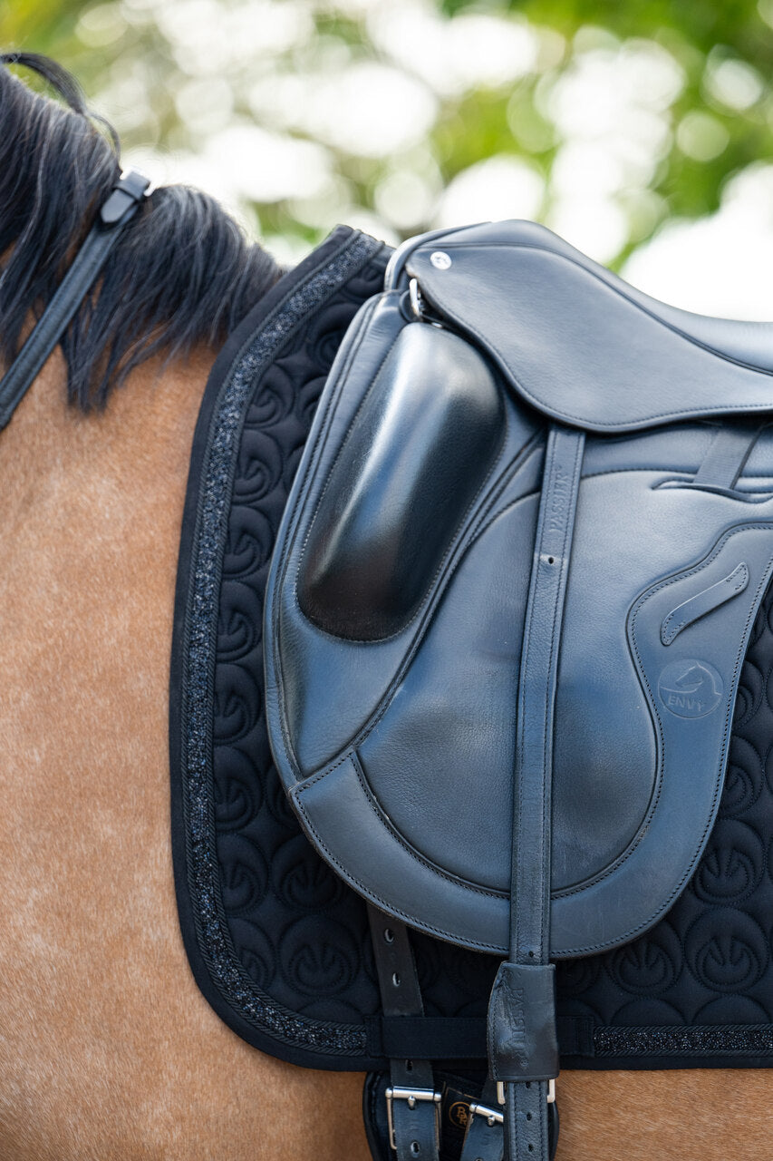 Czaprak Crystal Black Equus to połączenie elegancji i funkcjonalności, stworzone z myślą o najbardziej wymagających jeźdźcach. Dostępny jest w dwóch wersjach – DL (ujeżdżeniowej) i VS (wszechstronnej), aby idealnie dopasować się do stylu jazdy i rodzaju siodła.