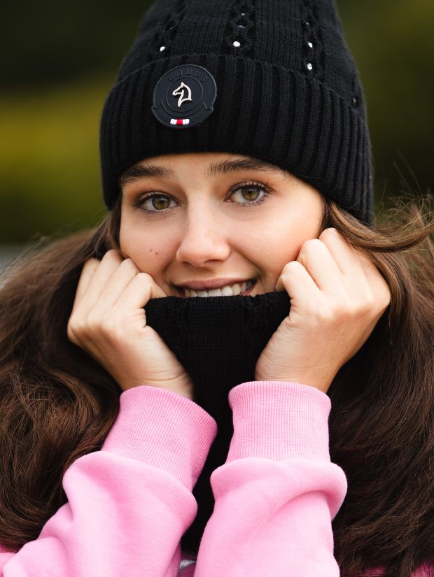 Dzięki elastycznemu materiałowi, czapka świetnie dopasowuje się do kształtu głowy, zapewniając idealne przyleganie bez ucisku. To doskonałe uzupełnienie zimowej garderoby każdego jeźdźca.